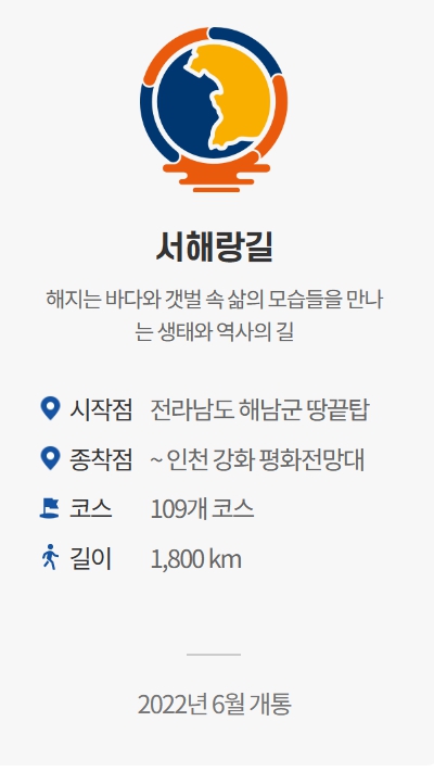 동·서·남해안과 DMZ 등 한반도 가장자리를 중단없이 연결하는 장거리 걷기 여행길(약 4,544km)로