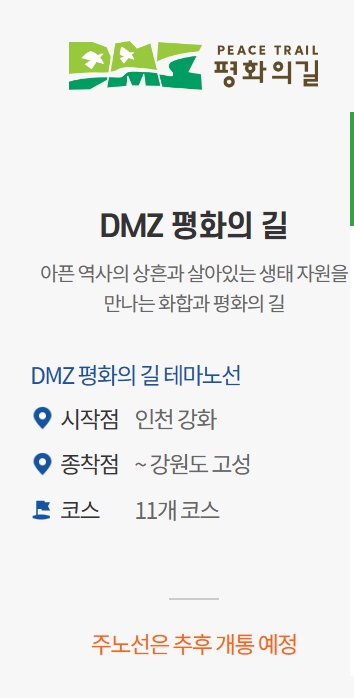 DMZ 평화의 길(강화~고성, ’23년 9월 개통 예정) 구성되어 있다.