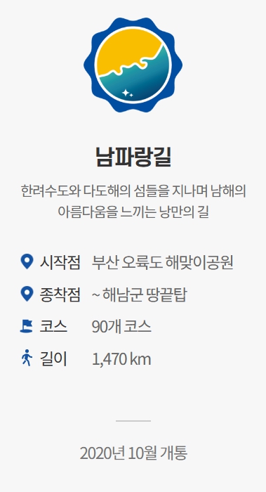 남해안의 남파랑길(부산~해남),