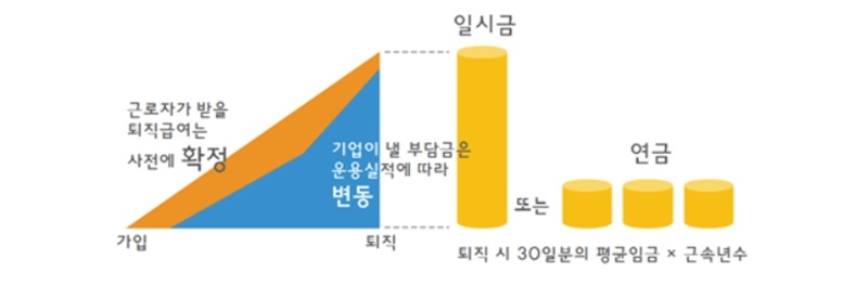 ✅ 확정급여형(DB형; Defined Benifit) - 근로자가 퇴직할 때 받을 퇴직급여가 사전에 확정된 퇴직연금 제도로, 사용자는 퇴직연금 부담금을 적립하여 자기의 책임으로 운용합니다.