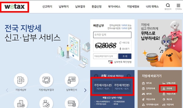 위택스에 로그인하면 주민세 납부액을 바로 볼 수 있습니다. 고지서가 없어도 바로 확인 후 바로 납부 가능합니다.