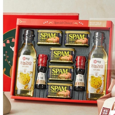회사의 단체선물로 무난하면서도 주고받기 좋은 추석 선물세트인 참치캔, 햄 통조림 세트입니다. 구비해 놓으면 즐겨 먹고 젊은 사람들이나 홀로 자취하는 직장인들에게 인기가 좋은 선물세트입니다.