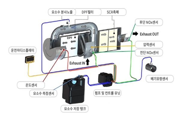 요소수는 요소 성분을 포함하고 있는 물, 차량에 연료와 별도로 주입하는 촉매제로, 경유차에서 나오는 유해한 질소 산화물을 물과 질소로 분해하여 매연을 줄이는 기능을 합니다.