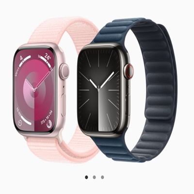 이번 애플워치 9 시리즈에 새로운 색상이 추가되었습니다. 알루미늄 재질은 기존 미드나이트, 스타라이트, 실버, 프로덕트 레드에 핑크 색상이 추가되었고, 스테인리스 스틸에는 골드, 실버, 그래파이트 색상으로 출시되었습니다. 케이스 크기는 41mm, 45mm로 출시되었고. 두 케이스 모두 화면이 한눈에 들어오는 상시표시형 전면 Retina 디스플레이를 탑재하고 있어 있다고 합니다.