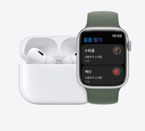 또 내 아이폰을 쉽게 찾을 수 있는 정밀 탐색 기능이 추가되었습니다. 2세대 초광대역 칩을 이용한 정밀 탐색으로 사용자가 아이폰을 잃어버렸을 때, 워치가 아이폰과의 대략적인 거리와 방향을 알려주고, 아이폰에 가까워질수록 햅틱 피드백, 음성 신호, 시각 정보를 통해 위치를 정확히 파악할 수 있게 도와줍니다.