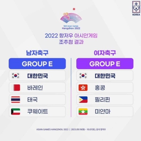 남자 축구 대표팀은 쿠웨이트, 태국, 바레인과 함께 E조에 속해있습니다.