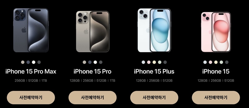 이번에 출시되는 아이폰 15 시리즈에는 아이폰 15, 아이폰 15 플러스, 아이폰 15 프로, 아이폰 15 프로맥스가 있습니다.