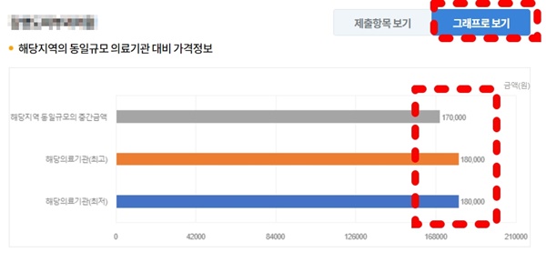 세부 정보를 클릭하면 가격정보가 나오고, 다른 병원과 가격비교까지 할 수 있어서 편리합니다.