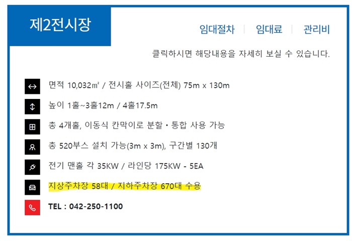 ✅ 제2 전시장 주차장은 지하 670대, 지상 58대