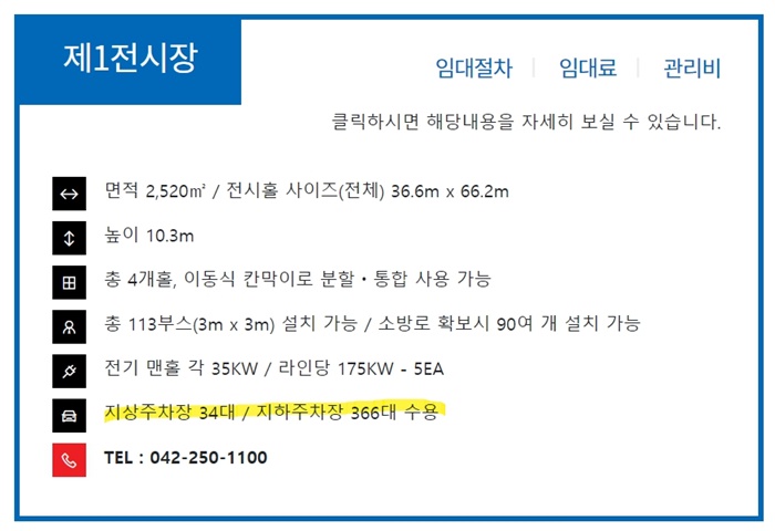 ✅ 제1 전시장 주차장은 지하 366대, 지상 34대